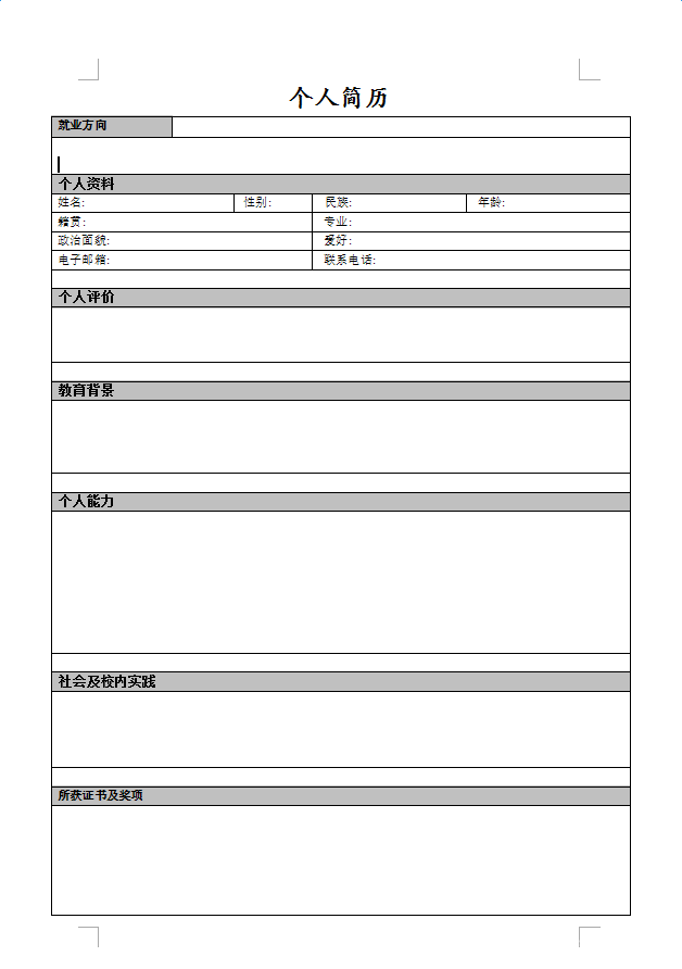 10.空白简历免费下载word